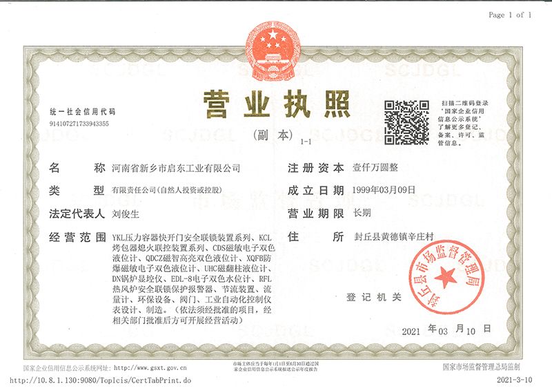 河南省新鄉(xiāng)市啟東工業(yè)有限公司始建于1987年,是專注研發(fā)、生產(chǎn)自動(dòng)化儀器儀表(主要與壓力容器、鍋爐等容器配套使用)的廠家。主要產(chǎn)品有液位計(jì)(磁敏雙色型、磁翻柱型等)系列、烤包器熄火聯(lián)控裝置系列、壓力容器快開門安全聯(lián)鎖保護(hù)裝置系列、鍋爐報(bào)警器系列。二十多年來,公司產(chǎn)品暢銷國內(nèi)并遠(yuǎn)銷俄羅斯、蒙古與東南亞,深得廣大用戶的信賴和好評(píng)。我們多年來致力于自動(dòng)化儀器儀表的研制生產(chǎn),公司現(xiàn)具有完善的生產(chǎn)、試驗(yàn)、檢測(cè)手段和設(shè)備。科技創(chuàng)新、誠信服務(wù),是我們不變的經(jīng)營理念,我們將以強(qiáng)有力的技術(shù)支持及售后竭誠為客戶提供良好的服務(wù)。  2012年我公司成功研發(fā)了KCL系列烤包器熄火聯(lián)控裝置,并于2013年2月2日榮獲中華人民共和國國家知識(shí)產(chǎn)權(quán)局辦法的《實(shí)用新型**證書》<**號(hào):2021202257735>該產(chǎn)品廣泛應(yīng)用于唐鋼等大型鋼鐵企業(yè),為烤包器安全作業(yè)提供了有力的保障。  2002年我公司成功研發(fā)磁敏電子雙色液位計(jì)獨(dú)特的高亮度LED紅綠雙色顯示,獲得了專家的首肯和用戶的一致好評(píng)。在此基礎(chǔ)上我公司研發(fā)人員十年磨一劍,致力于XQFB-1防爆型磁敏雙色液位計(jì)的研發(fā),于2013年12月27日由國家防爆電器產(chǎn)品質(zhì)量監(jiān)督檢驗(yàn)中心檢驗(yàn)合格并頒發(fā)防爆合格證書<編號(hào):cnex19.0883>。該產(chǎn)品性能得到了充分的發(fā)揮,廣泛應(yīng)用于含有Ⅱ類A·B級(jí)T1-T4組可燃?xì)怏w或蒸汽與空氣混合形成的爆炸性混合物的0區(qū)、1區(qū)危險(xiǎn)場(chǎng)所。連接用戶DCS或PLC系統(tǒng)實(shí)現(xiàn)遠(yuǎn)距離集中顯示和控制,從而實(shí)現(xiàn)節(jié)能、數(shù)字化管理。為用戶增加了一定的經(jīng)濟(jì)效益和社會(huì)效益,。2014年公司成功申請(qǐng)了夢(mèng)潤儀表的logo,新的品牌新的形象,夢(mèng)潤儀表是啟東的LOGO, 歡迎新老用戶前來洽談合作。  我們一如既往地注重科研的投入,憑借產(chǎn)品的不斷更新、加大科技含量,進(jìn)一步拓展市場(chǎng)。我們相信品質(zhì)成就未來,以過硬質(zhì)量、優(yōu)惠價(jià)格、完善的售后服務(wù)熱忱歡迎廣大客戶來我司視察指導(dǎo)、洽談業(yè)務(wù);精誠合作,共創(chuàng)輝煌!